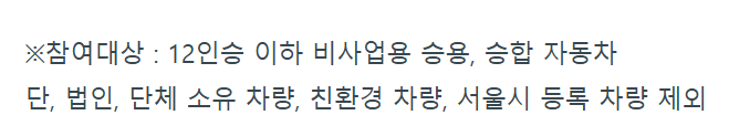💡 단, 법인 차량의 경우 일부 제한이 있을 수 있으며, 자격 조건은 신청 시 확인해야 합니다.