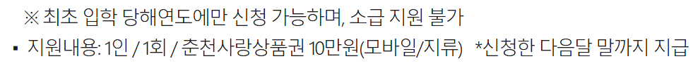 ✅ 1인당 1회 지급 – 10만원 (최초 입학 당해연도에만 신청 가능, 소급 지원 불가)