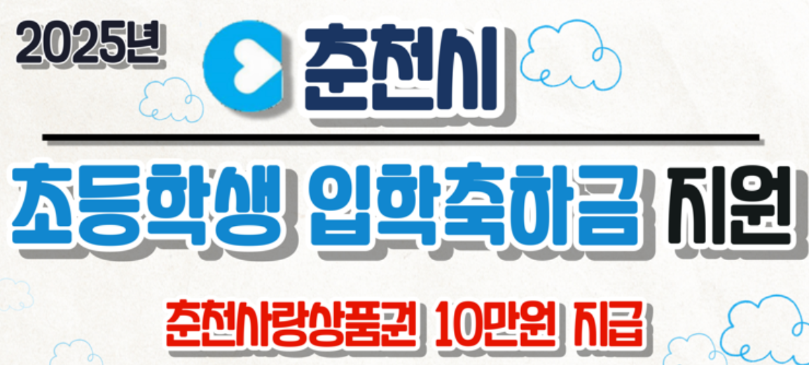 강원도 춘천시에서는 2025년 초등학교에 입학하는 신입생을 위해 입학 축하금 (춘천사랑상품권 10만원)을 지급합니다.