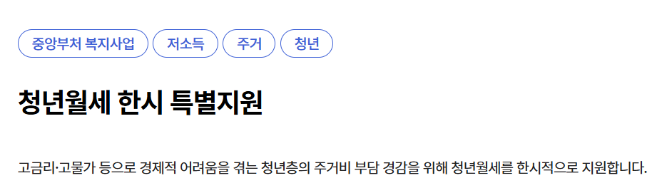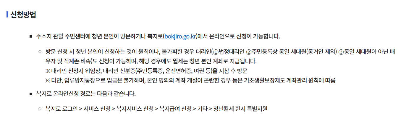 - 서비스 신청 > 복지서비스 신청 > 기타 > 청년월세 한시 특별지원