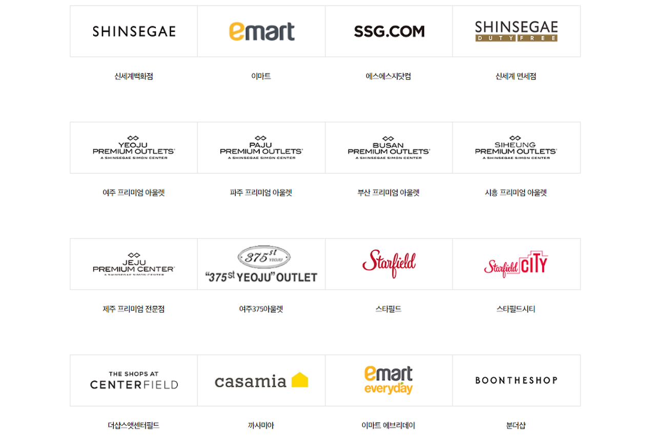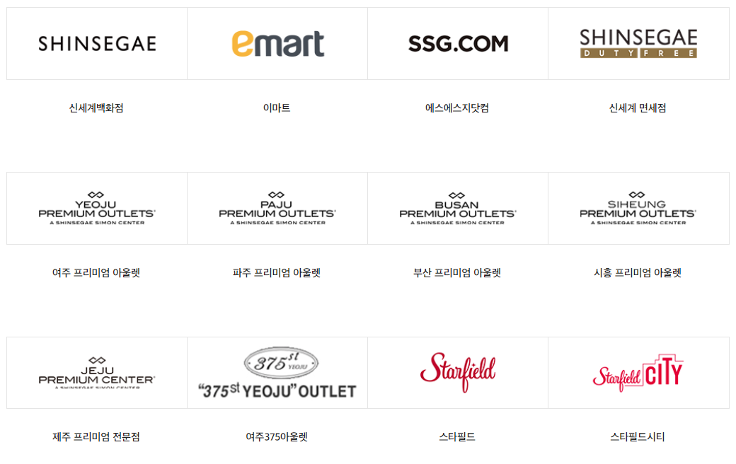 아래 이미지를 통해 신세계 상품권 사용처를 확인해보세요.