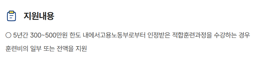 - 훈련비 지원: 수강료의 45~100% 지원
