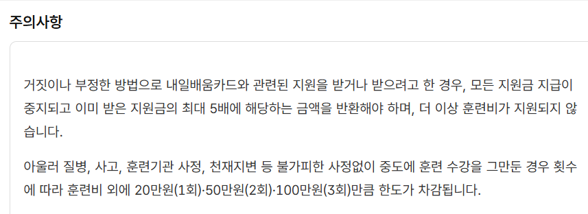 - 수강료 본인 부담금: 15~55% (소득수준, 취업률에 따라 다름)